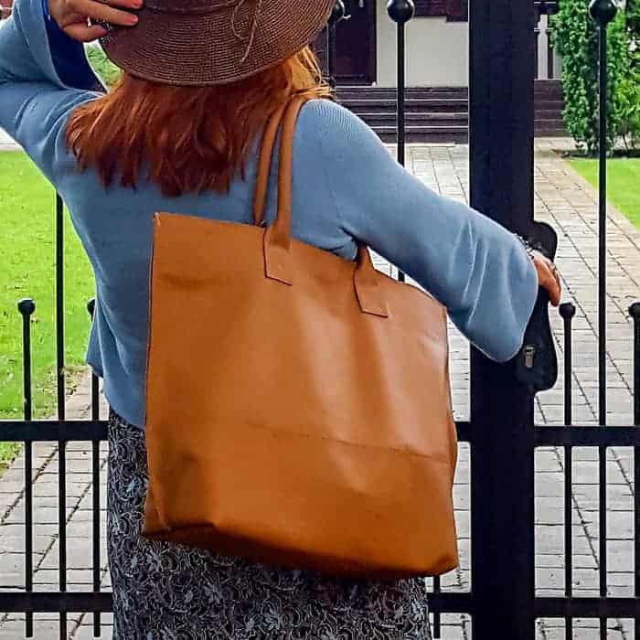 Vďaka predĺženým ručne šitým rúčkam je možné nosiť cez plece alebo v ruke.