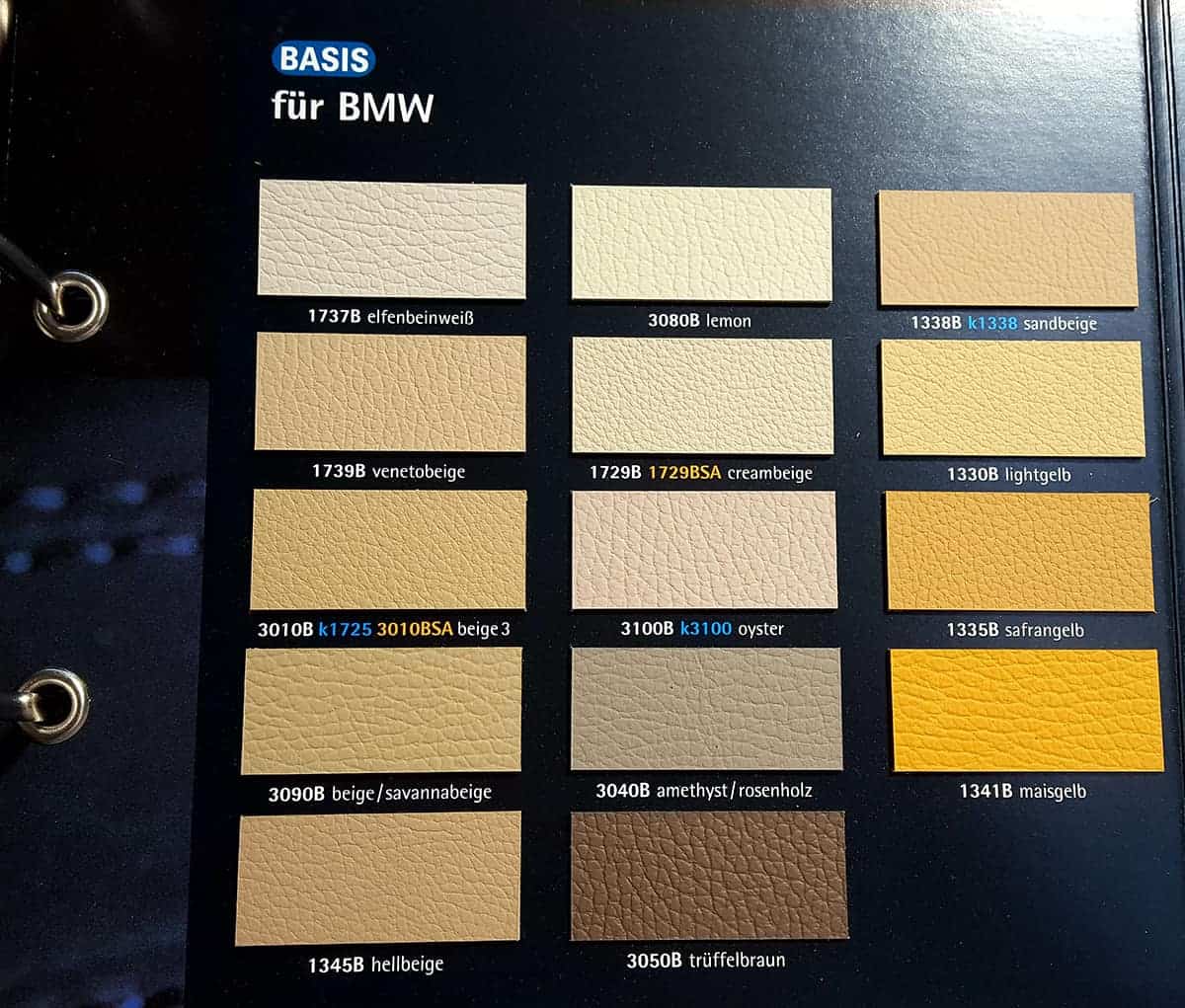 Gemusterte Textur: vollnarbiges Bisonleder, gefärbt, eingesetzt bei BMW und Mercedes-Benz