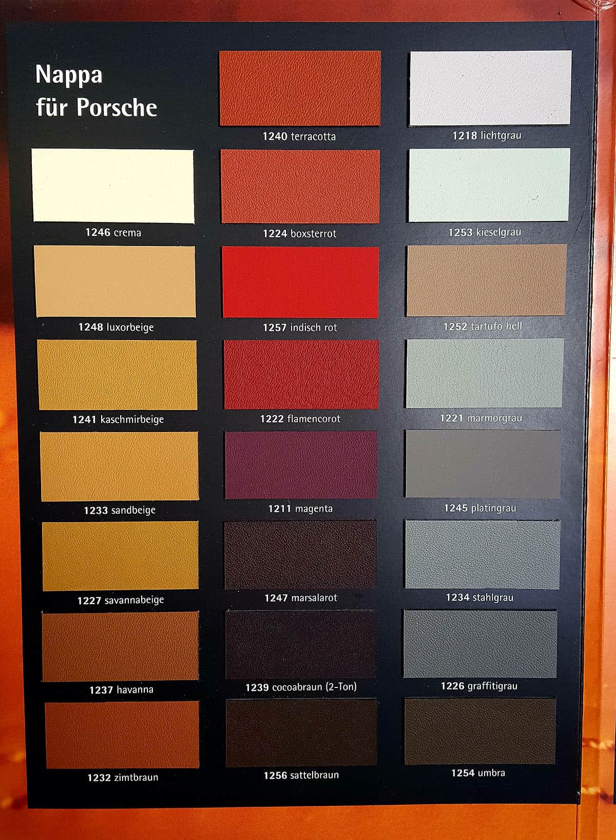 Nappaleder – glatt mit feiner Struktur und kleinen Poren Das ist die kostbarste Lederart. Sie wird aus Rohleder erster Kategorie hergestellt, woraus weiches und besonders elastisches Anilinleder entsteht (elastisches und weiches Leder, das zum Nappaleder gehört, benannt nach der kalifornischen Stadt Napa). Dieses Leder wird in seiner gesamten Dicke gebeizt, das Material ist an seiner natürlichen Struktur zu erkennen. Dadurch, dass nicht nur seine Oberfläche behandelt wird, erhält es seine matte Optik. Eingesetzt wird es bei Audi (feines Nappa, Valcona), BMW, Porsche, Bentley, Lamborghini, Mercedes-Benz und Ferrari. Der Behandlungsvorgang sorgt für Beständigkeit gegen große Temperaturunterschiede und Verschleiß. Die Oberfläche kann zu einer matten oder glänzenden Ausführung in verschiedenen Designs verarbeitet werden.